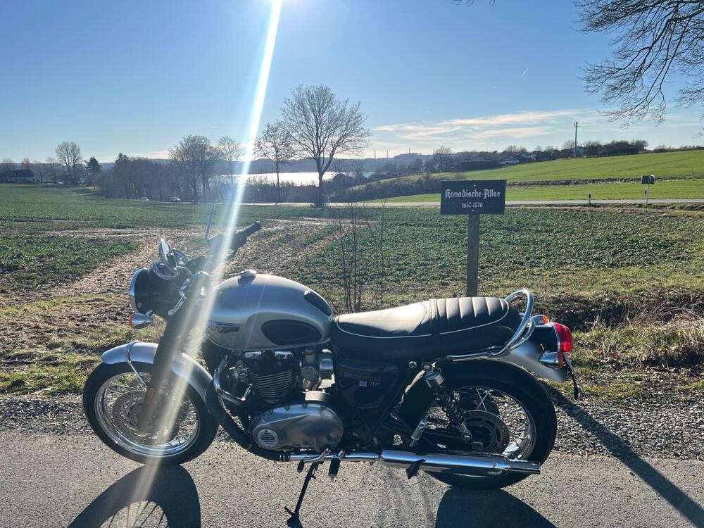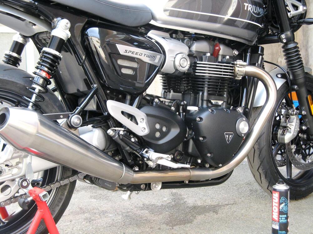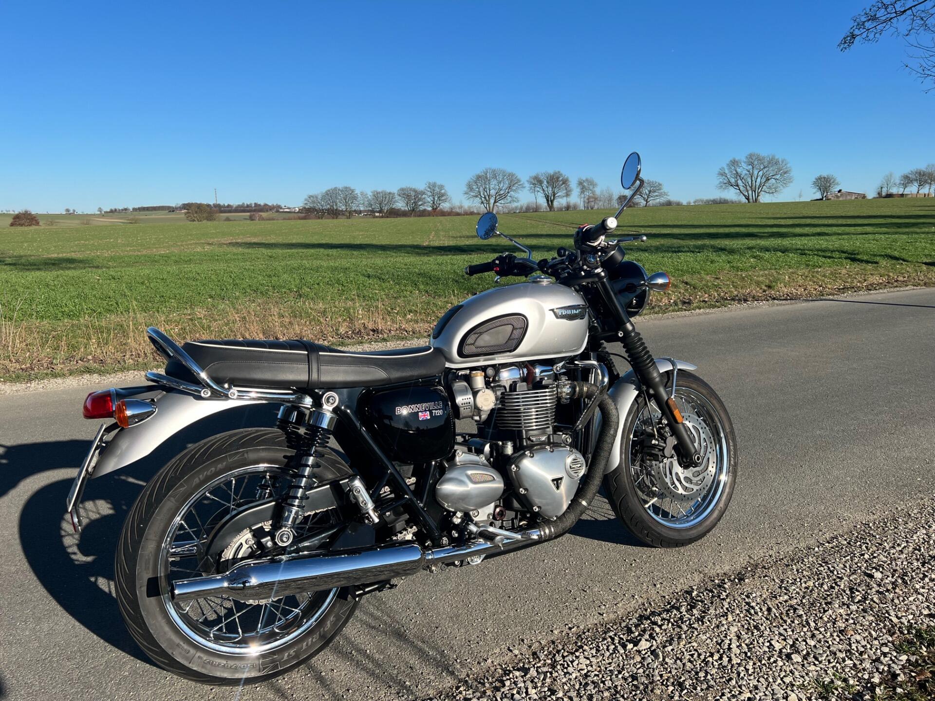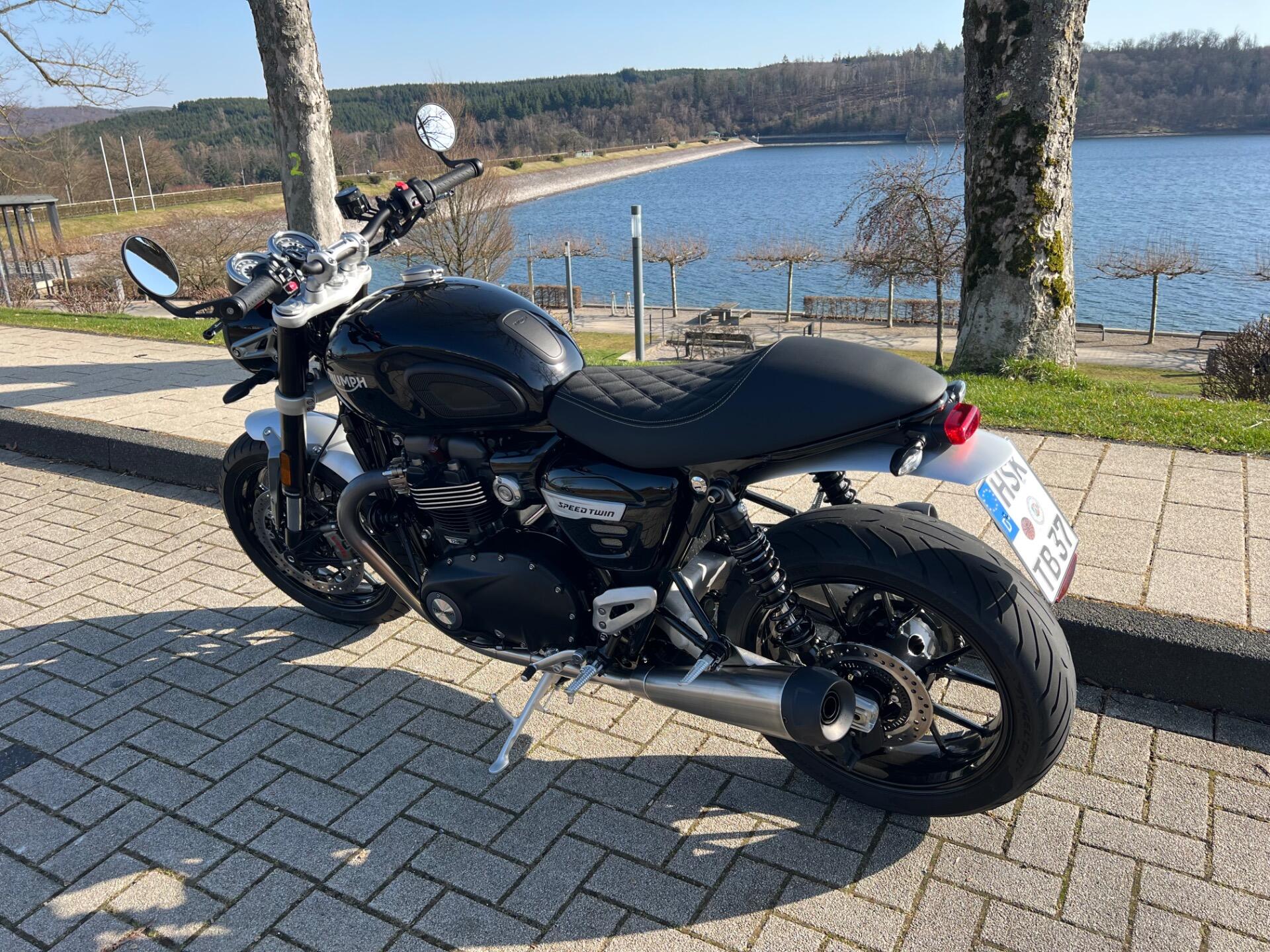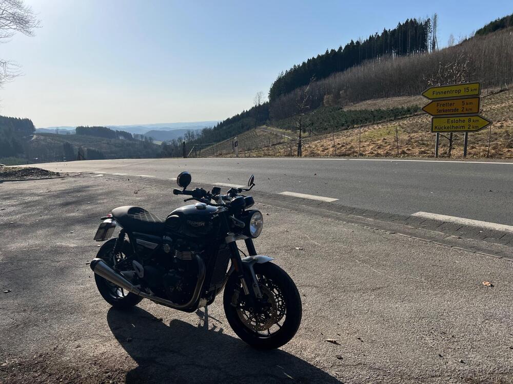 Sodele. Heute habe ich beim Dealer mal den Cafe Racer in Augenschein genommen. Das Arrangement mit Stummel und Rasten passt mir überraschend gut. Es bietet sich förmlich an für flotte Landstr. Runden so um 150bis 200km. Nur die Optik wirkt auf mich auch in Natura in so manchen Dingen einfach bissel zu dick aufgetragen. Weil ich schon da war und Zeit hatte, habe ich mir mal die Tiger Sport zur Brust genommen. Ich muss schon sagen , ein richtiges Wohlfühl Motorrad. Sie passt mir richtig gut und kalte Tage verlieren ihren Schrecken. Auch mit ihren netto preis könnte ich mich echt anfreunden und der 800er Motor ist eh ein Quell der Freude. Leggomio gefällt mir diese Karre Nein, probefahren werde ich sie nicht. Was will ich mit einem dritten Motorrad ? ..... und so weit, um dafür meine 2019 Speed Twin zu verkaufen bin ich noch lange nicht. ..... und dann habe ich mir aus dem Triumph Pflegeprogram noch dieses Protect & Shine für schlappe 15 Euro gekauft. Ist perfekt für alle metallenen Schwarzteile an der Speedy. Von der Gabel bis zu den Motordeckel bekommt dann alles einen wasser und schmutzabweisenden seidigen Schutzfilm. Ähnlich den MOTUL Shine & go welches inzwischen schlecht für michb zu bekommen ist Herrjenumollna ...... Grüße gerhard4 points