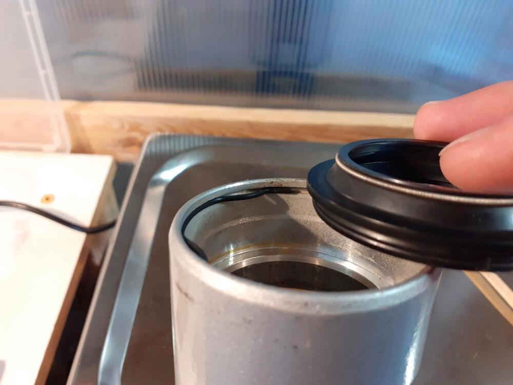 Moin zusammen, leider hat noch keiner eine Idee geäußert - da muss ich schon einen nachschießen, denn ich habe nun auch neue Staubdichtungen bestellt die gestern angekommen sind. Links die alte: Man sieht, dass der Außendurchmesser (55,5mm) vollständig ins Tauchrohr abgesenkt werden könnte. Rechts die neue: Hier ist ein "schlauer Rand" über dem 55,5mm breiten Dichtring zu erkennen. Dadurch wird das Tauchrohr nach oben hin vollständig abgedeckt und es kann sich kein Waser sammeln. Tolle Idee, nur entfällt damit die Option, die Staubdichtung (wie die alte) unter den Sicherungsring zu bekommen. Schlimmer noch. Der Abstand der Nut für den Sicherungsring im Kayaba-Tauchrohr zum oberen Rand ist so klein, dass die neue Staubdichtung kaum Halt hätte, wenn ich sie vorschriftsmäßig ÜBER den Ring aufstecken würde: ... was hab ich da für komische Tauchrohre??? Oder gibt es 2 verschiedene Staubdichtungsformen? - Wie gesagt: wenn sie aussehen würden, wie die alte, dann würde man es wenigstens "falsch herum" einbauen können. Aber wenn ich diese Staubkappe jetzt ganz oben aufstecke, dann hat - weder der Simmerring richtigen Halt nach oben (weil ein ca. 10mm hoher Bereich bis zum Sicherungsring frei ist) - noch sitzt die Staubdichtung fest (weil sie überm Sicherungsring nur 2mm Halt hat, obwohl sie ca. 4mm hoch ist) Was läuft hier falsch? Gruß, Stefan