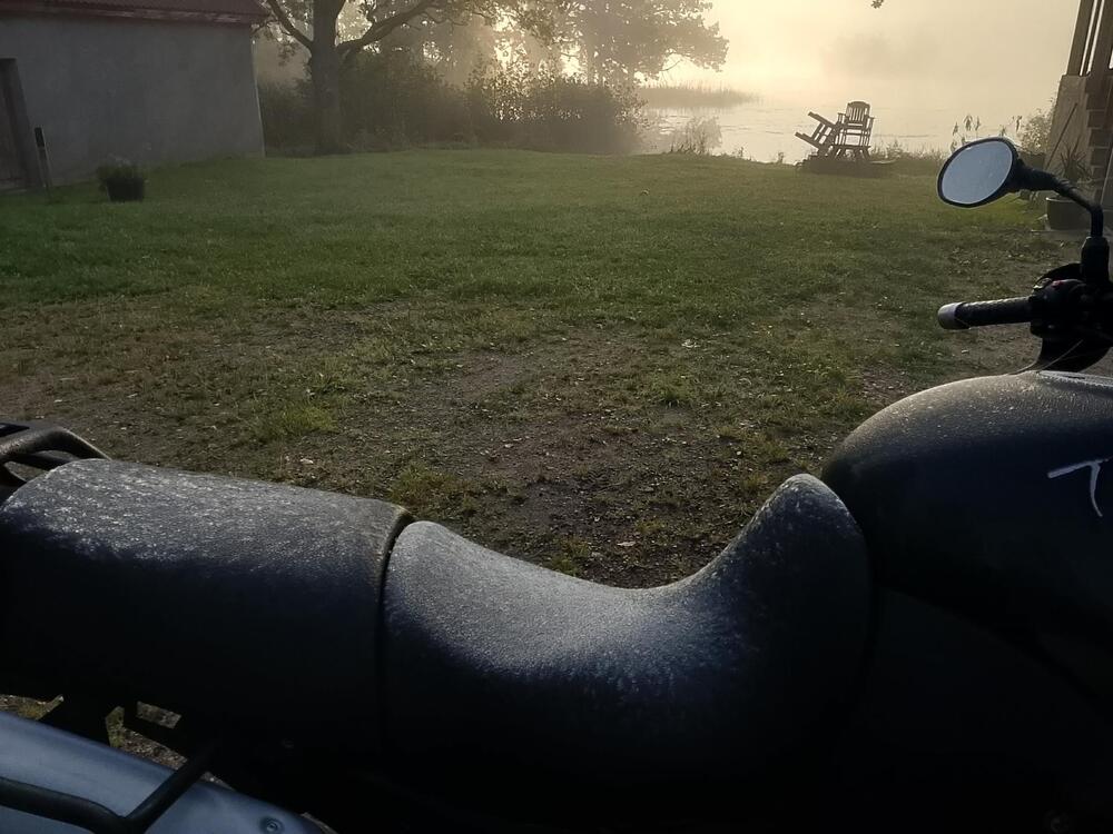 Dann wurde dem Tiger doch ein bisschen kalt am See. Eine letzte Runde, dann ging das ab in die Halle. Schmust nun unter einer Plane mit meiner R1100GS, mal sehen was die Auskungeln, einer von beiden muss im Frühjahr gehen, ich glaube es wird die GS treffen.... -