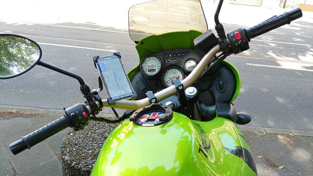 Alternative Lösung für Navihalterung an Tiger Explorer Bj. 2016. Ich war es leid mit der RAM Halterung am Lenker und die Orginal- Halterung für das Cockpit von Triumph war mir zu teuer und ist auch unflexibel, weil ohne RAM und damit für z.B. Handy ungeeignet. Nun habe ich etwas aus Edelstahl Vollmetall gebaut zur Montage an der orginalen Aufnahme des Cockpit...... Scheibe lässt sich natürlich ohne Probleme in jede Stellung fahren.