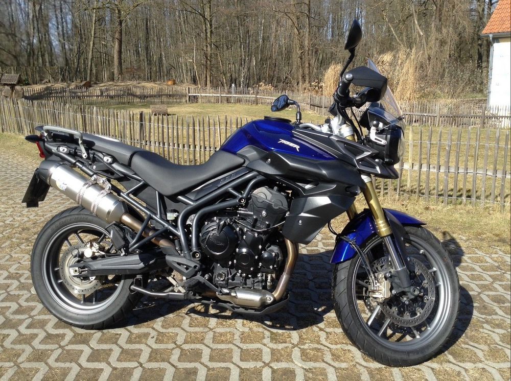 Hallo alle zusammen, wede mich heute auch mal kurz vorstellen. Ich (Stefan) bin 41, fahre seit 23 Jahren Motorrad, und die Tiger 800 ist mein 4. Motorrad. Meine Mororradgeschichte: Mit 18 begann ich auf einer KAWA GPZ 600R (damals noch mit 27PS) und als "Jahresmotorrad" mit 4000km beim damaligen "Förderer" in Rettigheim gekauft. Ab 20 offen (85PS), die bin ich dann die gesamte Zivi- und Studentenzeit gefahren bis 35000 km. Nach der Uni gab es dann in der Familie einen Motorradunfall und ich und die meisten meiner Cousins haben darauf ihre Motorräder vekauft. Nach 2 Jahren hats mich aber doch wieder gepackt und als damaliger Referendar (ohne viel Geld) hat es nur für eine gebrauchte Suzi GSX600F gelangt. Diese nach 2 Jahren mit Superbikelenker-Kit etwas bequemer gemacht. 2006 dann umgestiegen auf eine gebrauchte KAWA ZX9R (Bj. 2003) (die auch noch mein Zweitmotorrad ist). Ab 2011 dann immer wieder mit Triumph geliebäugelt, Speed und Street Triple Probe gefahren und im Sommer 2013 hats mich dann gepackt. Auf mehreren Triumph Webseiten umgeschaut und die Tiger 800 Aktion mit den Tageszulassungen entdeckt. Da mein Home Triumph Dealer in Sinsheim leider keine mehr auf Lager hatte bin ich nach Göppingen zum Motorcorner gekommen. Mit dem Auto runter, Probe gefahren und die Entscheidung war klar. Keine Speed-oder Street Triple sondern eine Tiger 800 ABS in schwarz. 3 Wochen später war sie fertig (tiefer gelegt (bin nur 170cm groß) , Handprotektoren dran, verstellbares Windschild) mit dem Zug runter und sie war mein. Nach 2 quälenden Wochen mit max. 6000 U/min waren dann die ersten 800km um, der erste Service (140€) in Sinsheim auch schnell erledigt und seit dem :) . Im Winter dann die ersten selbst angebauten Veränderungen: Sturzbügel Topcase Kühlerschutz verlängertes Schutzblech (Kettenschutz) Leovince Endtopf Achspads vorn und hinten und schließlich eine andere Screen (MRA Variotouringscreen) Wer Infos darüber braucht, einfach melden. Genausso bei Interesse an Touren durch den Odenwald, aber Achtung: einige der schönsten (Sensbachtal) und kurvigsten (Krähberg) Strecken im Odenwald sind am Wochenende gesperrt. LG Stefan