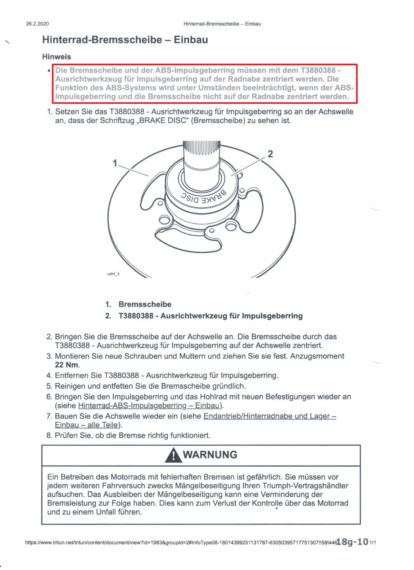 Tom13 Posted March 27 Posted March 27 (edited) Hey Jungs, habe beim Bremsen hinten seit einiger Zeit ein "Vibrieren" bemerkt, das sich bis ins Bremspedal übertragen hat. Es es jetzt nicht wirklich schlimm, fühlt sich aber einfach nicht richtig an! Daraufhin mit einer Messuhr den Seitenschlag der Bremsscheibe überprüft und tatsächlich 0.2 bis 0,25 gemessen, was laut WHB genau dem Servicelimit entspricht. Ich erwäge also den Tausch der Bremsscheibe. So habe ich nach längerer Pause wieder mal unser Forum bemüht und bin so auf diesen schon mal sehr hilfreichen Thread gestoßen. Auch habe ich natürlich im WHB nachgelesen und bin auf den fettgedruckten Hinweis bzgl. der erforderlichen Nutzung eine "Ausrichtwerkzeuges" gestoßen. Nun die Frage an die Frickler, die schon ´mal die Bremsscheibe getauscht haben: Ist das Spezialwerkzeug unbedingt erforderlich oder kann ich die erforderliche Zentrierung durch z.B. Nutzung einer Fühlerlehre wie auch beim hinteren Kettenrad erreichen oder reicht gar ein gutes Augenmaß? VG Tom Edited March 27 by Tom13 Quote