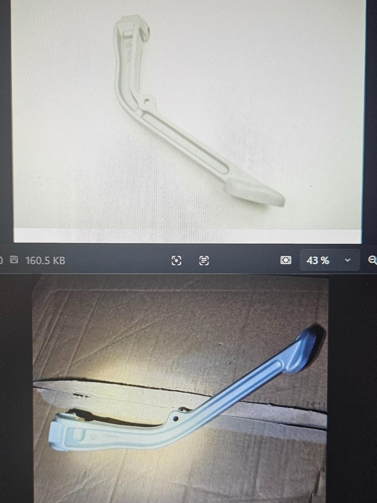 Boldorbastler Posted November 26, 2025 Author Posted November 26, 2025 (edited) vor 2 Stunden schrieb Thom: GT und GT Low kann man die Länge nicht so einfach vergleichen, weil der GT gerade ist, und der von der Low stark nach Außen gebogen ist. Erst mal vielen lieben Dank für die schnellen Antworten. Das ist schon mal sehr hilfreich. Also, der obere ist von der Low und der untere von der Normalen GT. Die sehen nicht ganz gleich aus weil der von der Low noch einen Steg im Bereich der Öse hat. Der Winkel ist nicht genau zu erkennen aber sieht annähernd gleich aus. Dazu müsste man die aber übereinander legen. Edited November 26, 2025 by Boldorbastler Quote